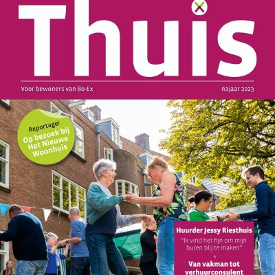 De najaarseditie van ons bewonersblad Thuis is uit. Lees meer over onder andere Donkere Dagen Offensief, een interessant interview met de voorzitter van Huurdervereniging Bo-Ex, kijk binnen bij een betrokken bewoonster op de Gloriantdreef en geniet mee van de feestelijkheden omtrent het 100-jarig bestaan van Het Nieuwe Woonhuis.